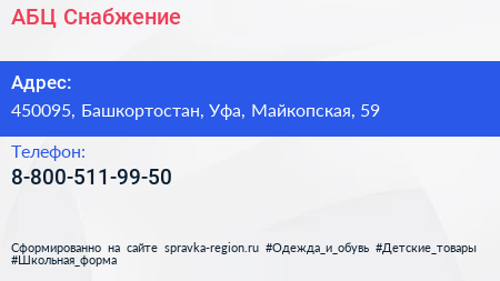 АБЦ Снабжение по адресу 450095, Башкортостан, Уфа, Майкопская, 59 в дальнейшем Организация, размещена в следующих категориях: