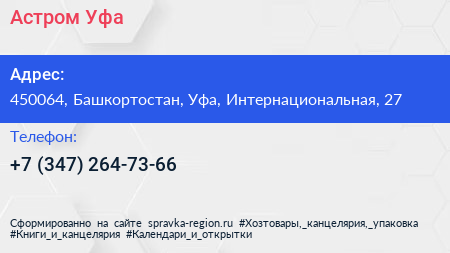 Астром-Уфа по адресу 450064, Башкортостан, Уфа, Интернациональная, 27 в дальнейшем Организация, размещена в следующих категориях: