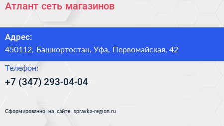Атлант, сеть магазинов по адресу 450112, Башкортостан, Уфа, Первомайская, 42 в дальнейшем Организация, размещена в следующих категориях:
