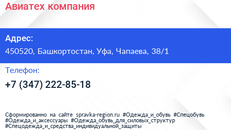 Авиатех, компания по адресу 450520, Башкортостан, Уфа, Чапаева, 38/1 в дальнейшем Организация, размещена в следующих категориях: