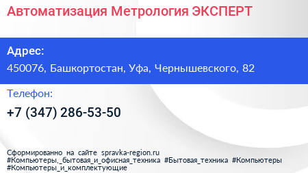 Автоматизация-Метрология-ЭКСПЕРТ по адресу 450076, Башкортостан, Уфа, Чернышевского, 82 в дальнейшем Организация, размещена в следующих категориях: