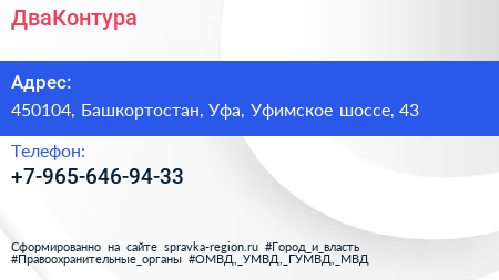 ДваКонтура по адресу 450104, Башкортостан, Уфа, Уфимское шоссе, 43 в дальнейшем Организация, размещена в следующих категориях: