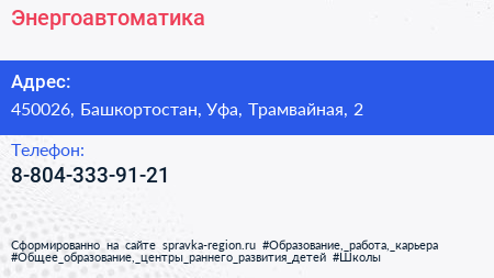 Энергоавтоматика по адресу 450026, Башкортостан, Уфа, Трамвайная, 2 в дальнейшем Организация, размещена в следующих категориях: