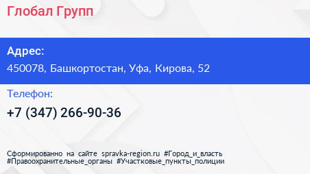 Глобал Групп по адресу 450078, Башкортостан, Уфа, Кирова, 52 в дальнейшем Организация, размещена в следующих категориях: