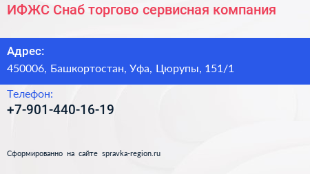 ИФЖС-Снаб, торгово-сервисная компания по адресу 450006, Башкортостан, Уфа, Цюрупы, 151/1 в дальнейшем Организация, размещена в следующих категориях: