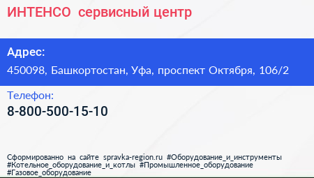 ИНТЕНСО+, сервисный центр по адресу 450098, Башкортостан, Уфа, проспект Октября, 106/2 в дальнейшем Организация, размещена в следующих категориях: