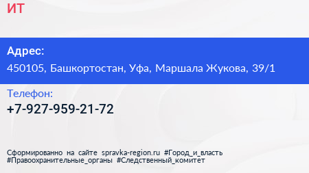 ИТ+ по адресу 450105, Башкортостан, Уфа, Маршала Жукова, 39/1 в дальнейшем Организация, размещена в следующих категориях: