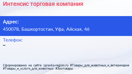 Интенсис, торговая компания по адресу 450078, Башкортостан, Уфа, Айская, 46 в дальнейшем Организация, размещена в следующих категориях: