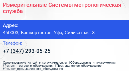 Измерительные Системы, метрологическая служба по адресу 450003, Башкортостан, Уфа, Силикатная, 3 в дальнейшем Организация, размещена в следующих категориях: