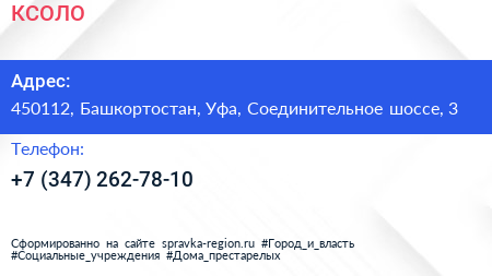 КСОЛО по адресу 450112, Башкортостан, Уфа, Соединительное шоссе, 3 в дальнейшем Организация, размещена в следующих категориях: