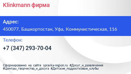 Klinkmann, фирма по адресу 450077, Башкортостан, Уфа, Коммунистическая, 116 в дальнейшем Организация, размещена в следующих категориях: