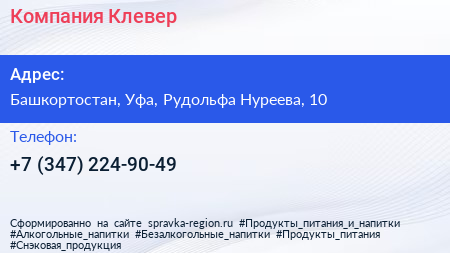 Компания Клевер по адресу Башкортостан, Уфа, Рудольфа Нуреева, 10 в дальнейшем Организация, размещена в следующих категориях: