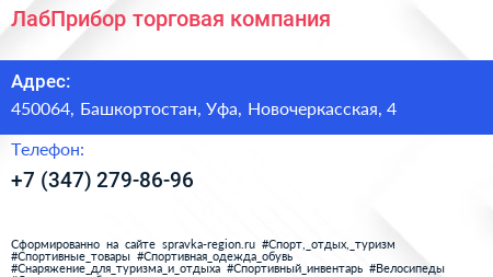 ЛабПрибор, торговая компания по адресу 450064, Башкортостан, Уфа, Новочеркасская, 4 в дальнейшем Организация, размещена в следующих категориях:
