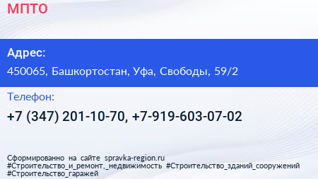 МПТО по адресу 450065, Башкортостан, Уфа, Свободы, 59/2 в дальнейшем Организация, размещена в следующих категориях: