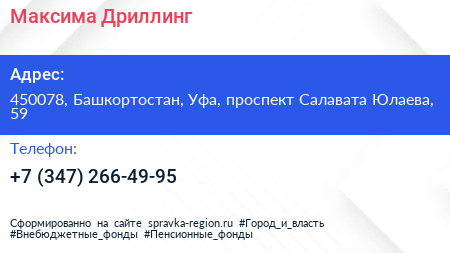 Максима Дриллинг по адресу 450078, Башкортостан, Уфа, проспект Салавата Юлаева, 59 в дальнейшем Организация, размещена в следующих категориях:
