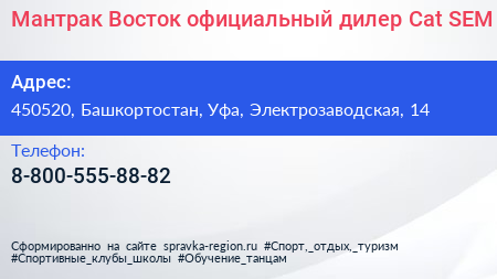 Мантрак Восток, официальный дилер Cat, SEM по адресу 450520, Башкортостан, Уфа, Электрозаводская, 14 в дальнейшем Организация, размещена в следующих категориях: