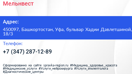 Мельнвест по адресу 450097, Башкортостан, Уфа, бульвар Хадии Давлетшиной, 18/3 в дальнейшем Организация, размещена в следующих категориях: