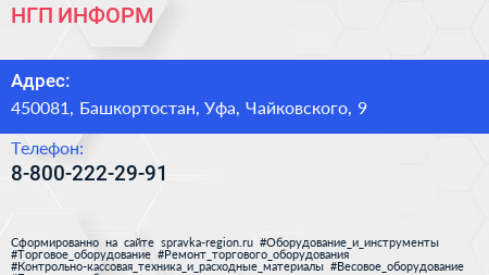НГП ИНФОРМ по адресу 450081, Башкортостан, Уфа, Чайковского, 9 в дальнейшем Организация, размещена в следующих категориях: