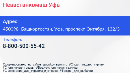 Невастанкомаш-Уфа по адресу 450098, Башкортостан, Уфа, проспект Октября, 132/3 в дальнейшем Организация, размещена в следующих категориях: