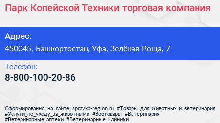 Парк Копейской Техники, торговая компания по адресу 450045, Башкортостан, Уфа, Зелёная Роща, 7 в дальнейшем Организация, размещена в следующих категориях: