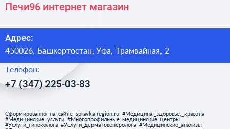 Печи96, интернет-магазин по адресу 450026, Башкортостан, Уфа, Трамвайная, 2 в дальнейшем Организация, размещена в следующих категориях: