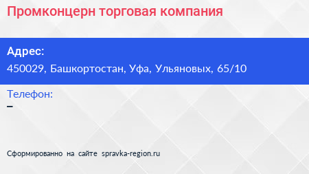 Промконцерн, торговая компания по адресу 450029, Башкортостан, Уфа, Ульяновых, 65/10 в дальнейшем Организация, размещена в следующих категориях: