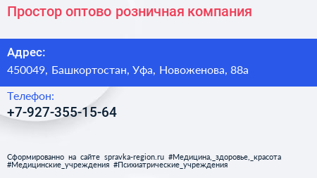 Простор, оптово-розничная компания по адресу 450049, Башкортостан, Уфа, Новоженова, 88а в дальнейшем Организация, размещена в следующих категориях: