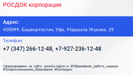 РОСДОК, корпорация по адресу 450099, Башкортостан, Уфа, Маршала Жукова, 29 в дальнейшем Организация, размещена в следующих категориях:
