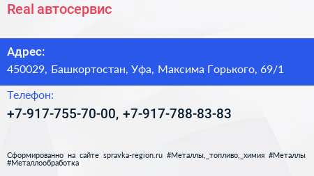 Real, автосервис по адресу 450029, Башкортостан, Уфа, Максима Горького, 69/1 в дальнейшем Организация, размещена в следующих категориях: