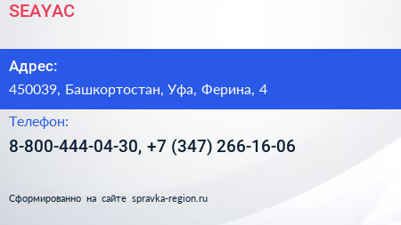 SEAYAC по адресу 450039, Башкортостан, Уфа, Ферина, 4 в дальнейшем Организация, размещена в следующих категориях: