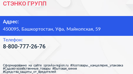 СТЭНКО ГРУПП по адресу 450095, Башкортостан, Уфа, Майкопская, 59 в дальнейшем Организация, размещена в следующих категориях: