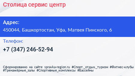 Столица, сервис-центр по адресу 450044, Башкортостан, Уфа, Матвея Пинского, 6 в дальнейшем Организация, размещена в следующих категориях: