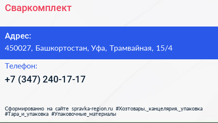 Сваркомплект по адресу 450027, Башкортостан, Уфа, Трамвайная, 15/4 в дальнейшем Организация, размещена в следующих категориях: