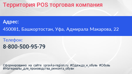 Территория POS, торговая компания по адресу 450081, Башкортостан, Уфа, Адмирала Макарова, 22 в дальнейшем Организация, размещена в следующих категориях: