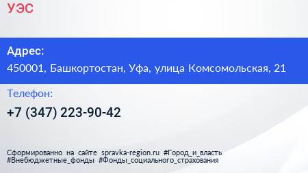 УЭС по адресу 450001, Башкортостан, Уфа, улица Комсомольская, 21 в дальнейшем Организация, размещена в следующих категориях: