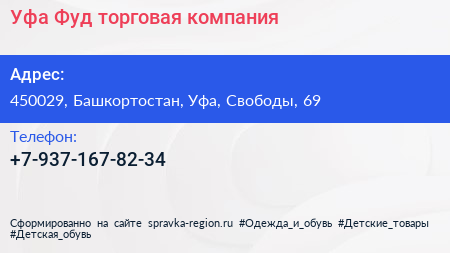 Уфа-Фуд, торговая компания по адресу 450029, Башкортостан, Уфа, Свободы, 69 в дальнейшем Организация, размещена в следующих категориях: