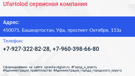 UfaHolod, сервисная компания по адресу 450075, Башкортостан, Уфа, проспект Октября, 153а в дальнейшем Организация, размещена в следующих категориях: