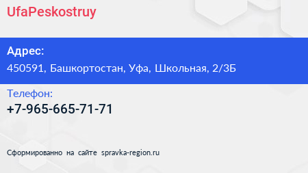 UfaPeskostruy по адресу 450591, Башкортостан, Уфа, Школьная, 2/3Б в дальнейшем Организация, размещена в следующих категориях: