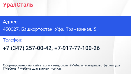 УралСталь по адресу 450027, Башкортостан, Уфа, Трамвайная, 5 в дальнейшем Организация, размещена в следующих категориях: