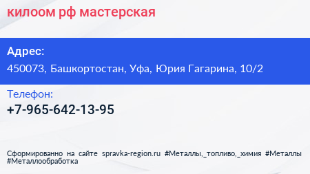 килоом.рф, мастерская по адресу 450073, Башкортостан, Уфа, Юрия Гагарина, 10/2 в дальнейшем Организация, размещена в следующих категориях: