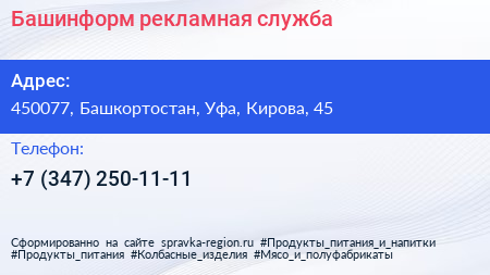 Башинформ, рекламная служба по адресу 450077, Башкортостан, Уфа, Кирова, 45 в дальнейшем Организация, размещена в следующих категориях: