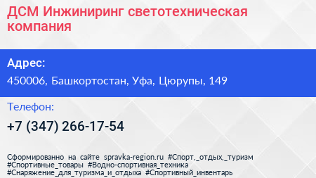 ДСМ-Инжиниринг, светотехническая компания по адресу 450006, Башкортостан, Уфа, Цюрупы, 149 в дальнейшем Организация, размещена в следующих категориях: