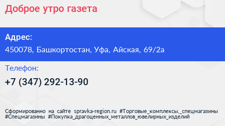 Доброе утро, газета по адресу 450078, Башкортостан, Уфа, Айская, 69/2а в дальнейшем Организация, размещена в следующих категориях: