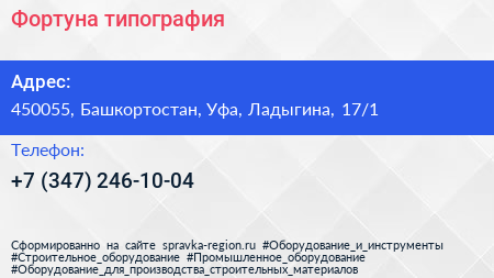 Фортуна, типография по адресу 450055, Башкортостан, Уфа, Ладыгина, 17/1 в дальнейшем Организация, размещена в следующих категориях: