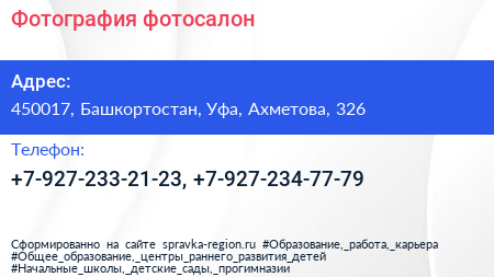Фотография, фотосалон по адресу 450017, Башкортостан, Уфа, Ахметова, 326 в дальнейшем Организация, размещена в следующих категориях: