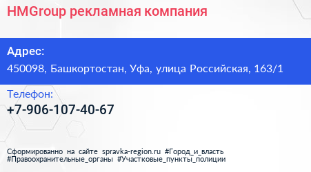 HMGroup, рекламная компания по адресу 450098, Башкортостан, Уфа, улица Российская, 163/1 в дальнейшем Организация, размещена в следующих категориях: