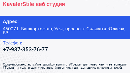 KavalerStile, веб-студия по адресу 450071, Башкортостан, Уфа, проспект Салавата Юлаева, 89 в дальнейшем Организация, размещена в следующих категориях: