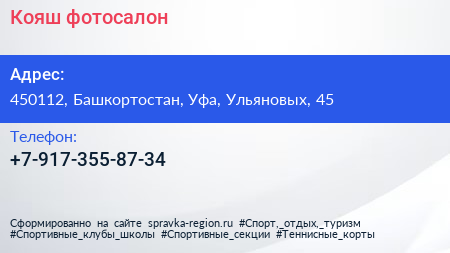 Кояш, фотосалон по адресу 450112, Башкортостан, Уфа, Ульяновых, 45 в дальнейшем Организация, размещена в следующих категориях: