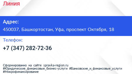 Линия по адресу 450037, Башкортостан, Уфа, проспект Октября, 18 в дальнейшем Организация, размещена в следующих категориях: