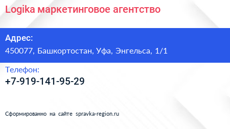 Logika, маркетинговое агентство по адресу 450077, Башкортостан, Уфа, Энгельса, 1/1 в дальнейшем Организация, размещена в следующих категориях: